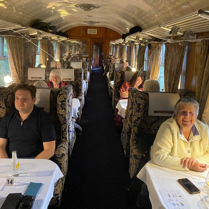 Bookings can be made in groups of up to 6 people. A discounted rate of £50/person is available to parties of 5 or 6 people in private 1st class compartments.